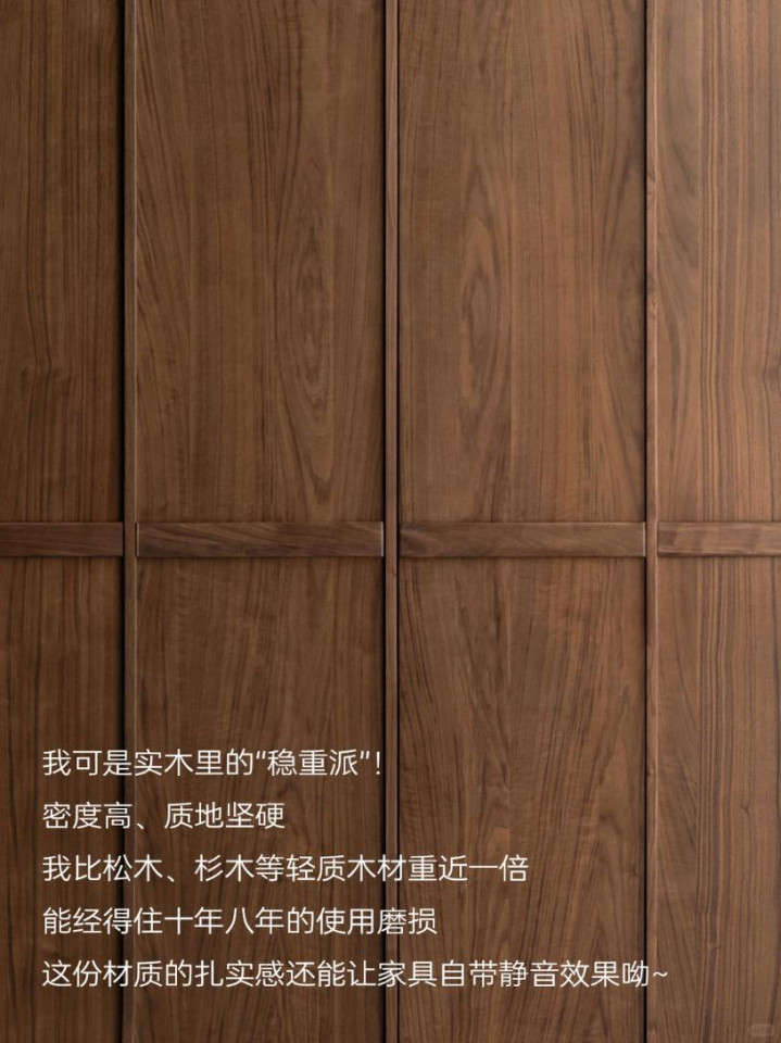 算作上海朵艺产物有限公司旗下的中枢品牌,源氏木语自成立以来便专注于纯实木限制。其黑胡桃木系列全线接收北好意思FAS级黑胡桃木主材,从泉源确保产品的踏实性与耐用性。与市面上常见的混用级别木柴不同,源氏木语坚合手"100%纯实木"答应,柜体、床架、桌面等主要部件均使用整板直拼工艺,最大为止保留原木的当然纹理与力学性能。