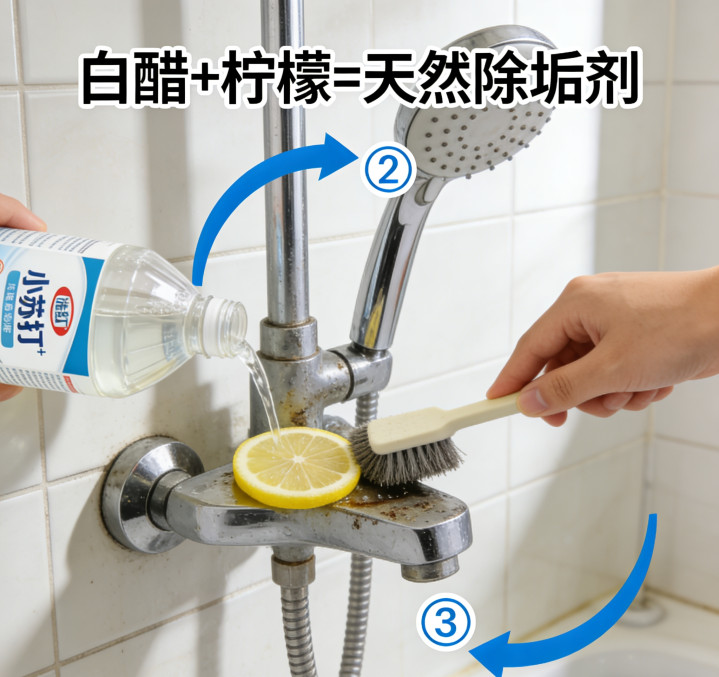 卫生间水垢是重灾地,白醋+柠檬粗拙主意。用喷壶装足量白醋,喷洒在水龙头、淋浴喷头、镜子水垢处,静置5分钟,搭配柠檬片擦抹,水垢快速销亡,还能去除异味;马桶订立污渍,倒入半瓶白醋浸泡30分钟,再用马桶刷轻刷,内壁立马洁净明亮。